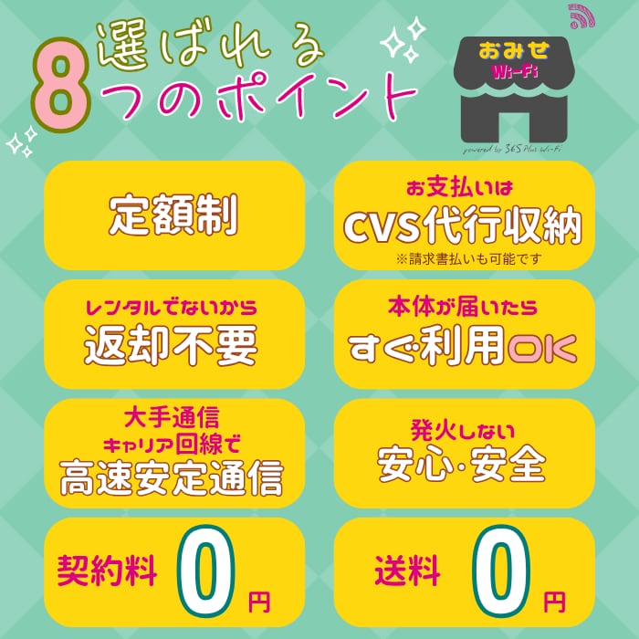 【おみせ WiFi 】は、車専用のポケットWiFiルーターで、契約不要・送料¥0で簡単にインターネット接続が可能です。